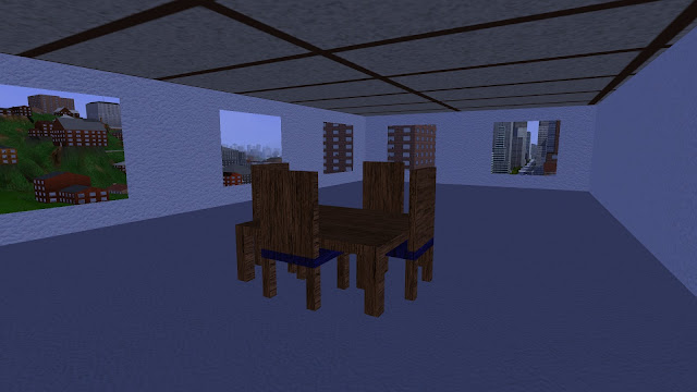 It wasn't too difficult to get lighting and shadows to work for building interiors by using the existing lighting system I had in place for city blocks, which itself was adapted from fixed (non-tiled) terrain lighting for gameplay mode. I used the same lighting settings from the city config file, which is currently set to up to 1000 light sources and 40 shadowed spotlights. That was enough for city blocks, but is somewhat short of the number of lights and shadows needed inside buildings. Well, at least it's enough for the interior when the player is inside a building. It doesn't work as well when the player is outside looking in through the windows.
