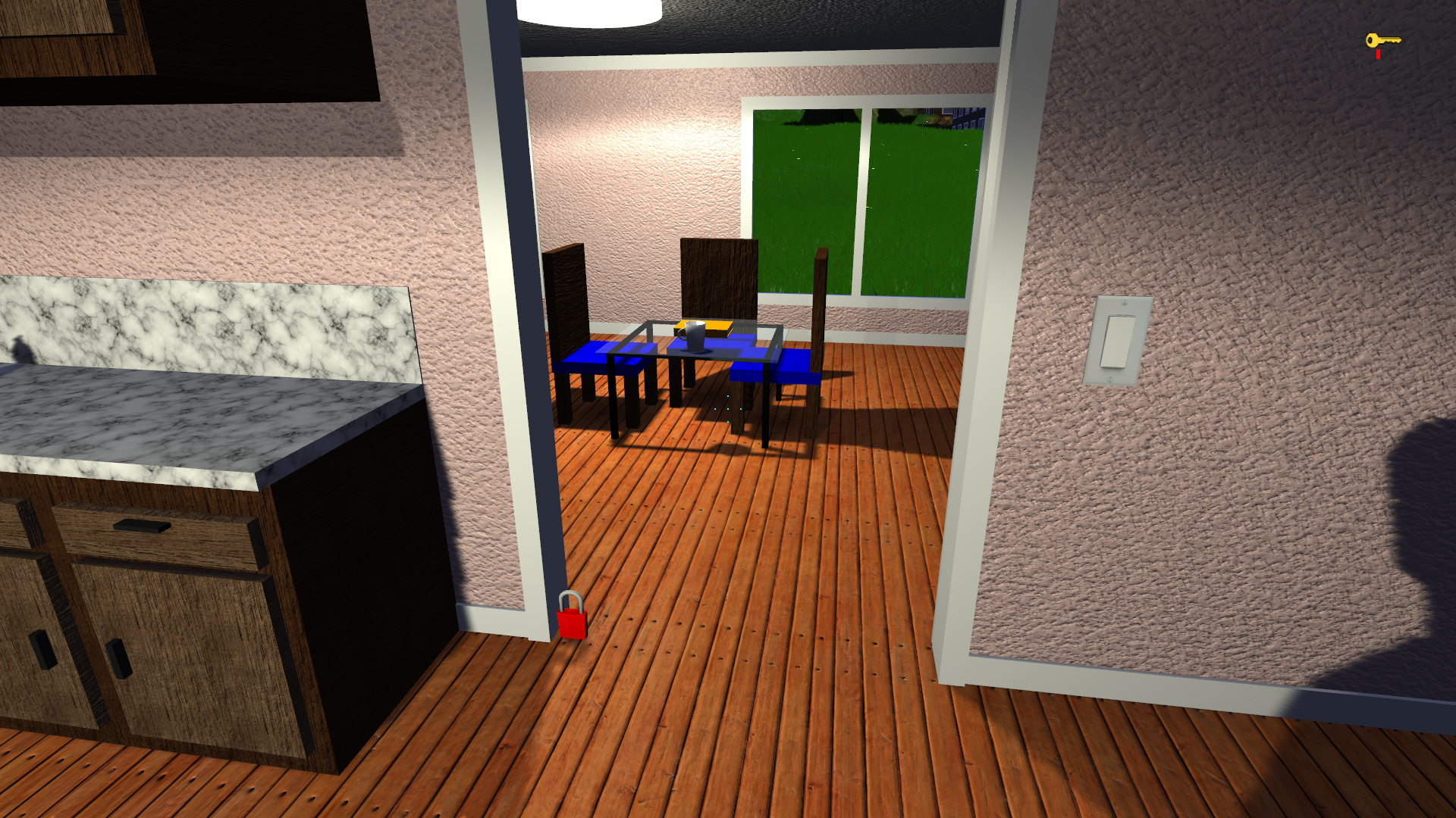 Here's a swing set placed in a back yard by a balcony. Extra padding has been accounted for in the placement to make sure there's enough space to swing. They're not currently interactive or animated though. I would love to have the seats swing back and forth when pushed by the player, but none of the free 3D swing set models I found have this sort of animation. Birds can land and take off from swing sets. If you look closely, you can see a dark gray bird on the center of the top bar in the screenshot below.